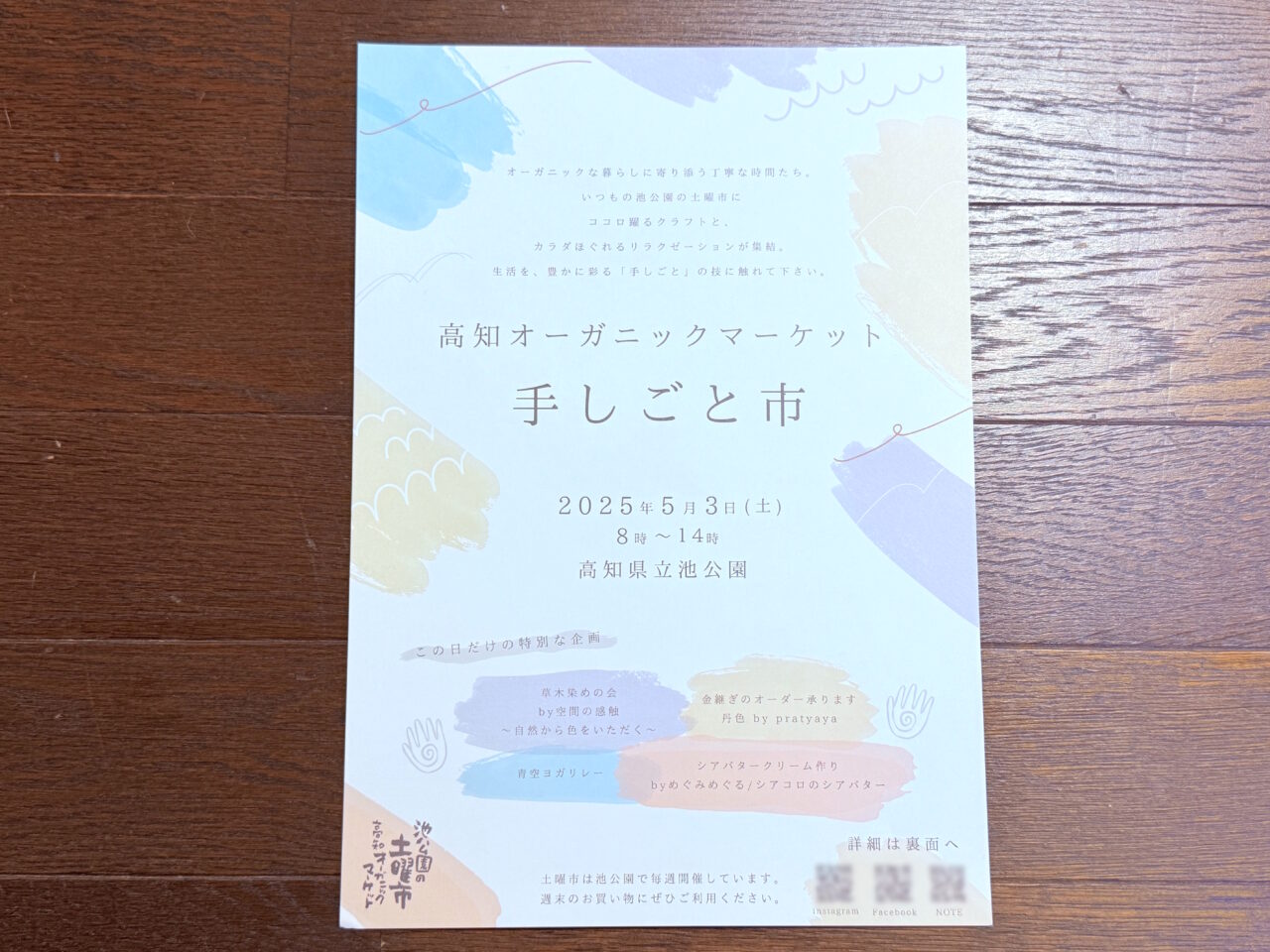 高知市大川筋にある高知オーガニックマーケットで開催される「高知オーガニックマーケット 手しごと市」は、2025年5月3日に行われます。毎日を丁寧に生きるオーガニックな暮らしが好きな方にオススメのイベントです。