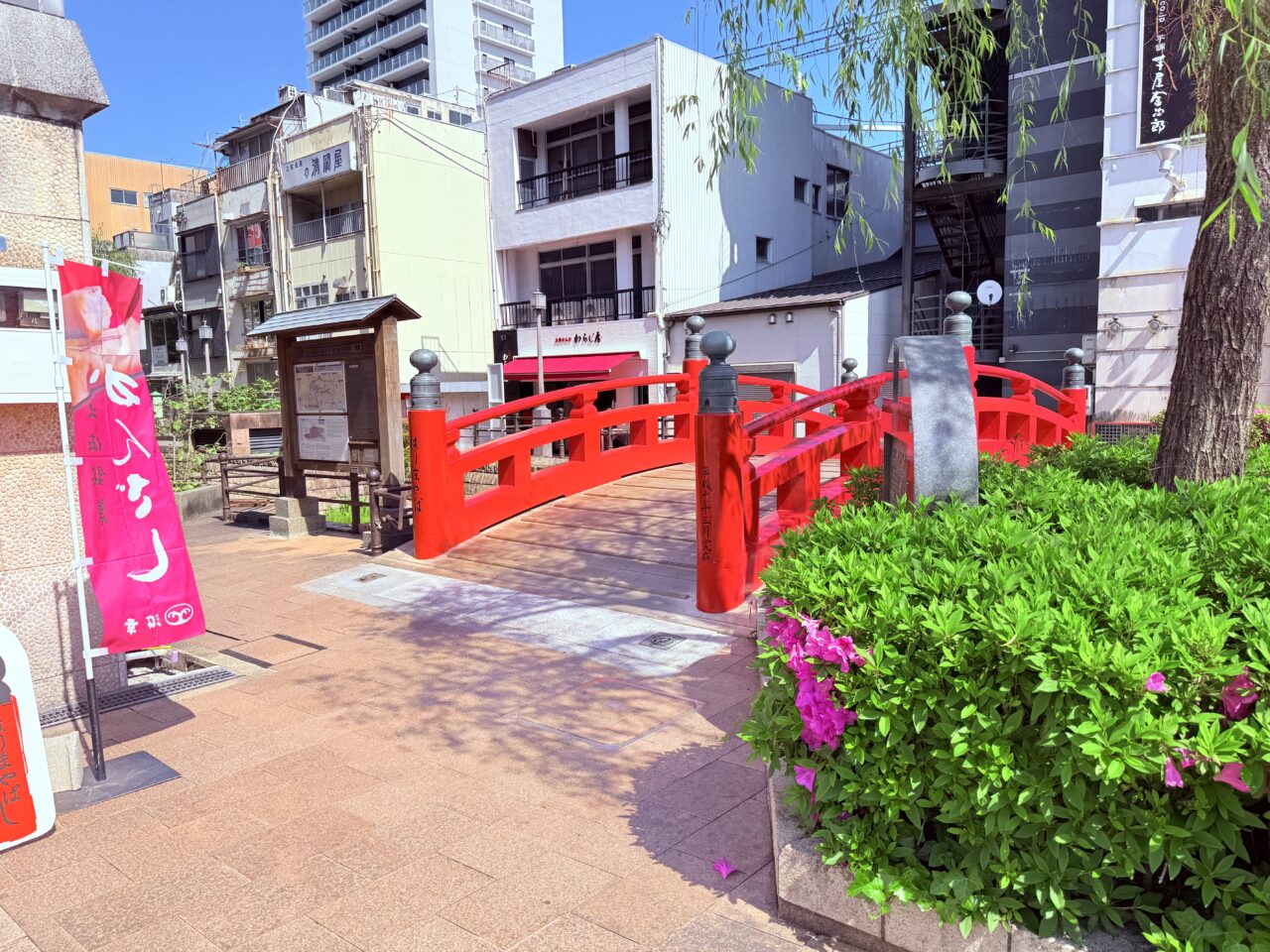 まずはアンパンマン像のすぐそばにある朱塗りが美しい「はりまや橋」。江戸時代に堀川を挟んで商売を行っていた播磨屋と櫃屋が、互いの往来のために設けた私橋が起源とされています。「思っていたよりも小さい!」とがっかりされることから、「日本三大がっかり名所」にも数えられています。