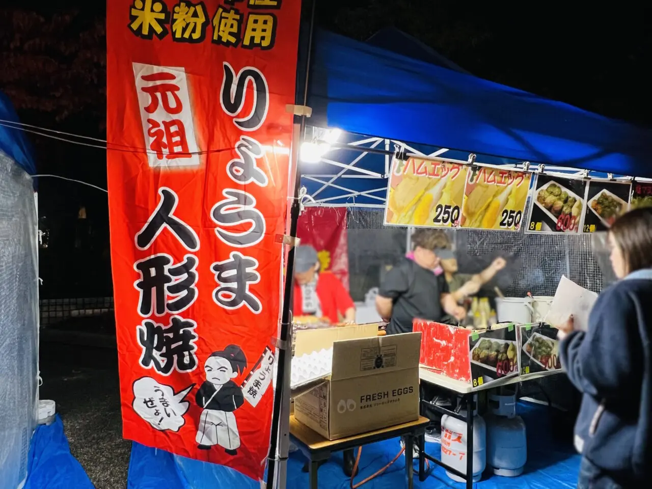中央公園のメインステージでの式典は17:30から。巨大なバースデーケーキの点灯式などが行われます。グルメブースの出店もあり、「りょうまの人形焼」など、おいしいものを楽しみながら龍馬の誕生日を祝うことができます。