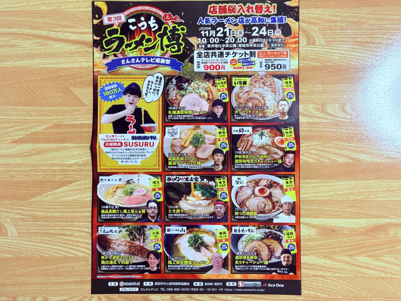 そんなラーメン好きの皆さんにうれしいニュース!高知市帯屋町の東洋電化中央公園で「第3回 こうちラーメン博」が開催されます!全国各地から人気のラーメン店が集結し、食欲の秋をさらに盛り上げてくれるイベントです。高知初上陸のお店もあるそうですよ♪