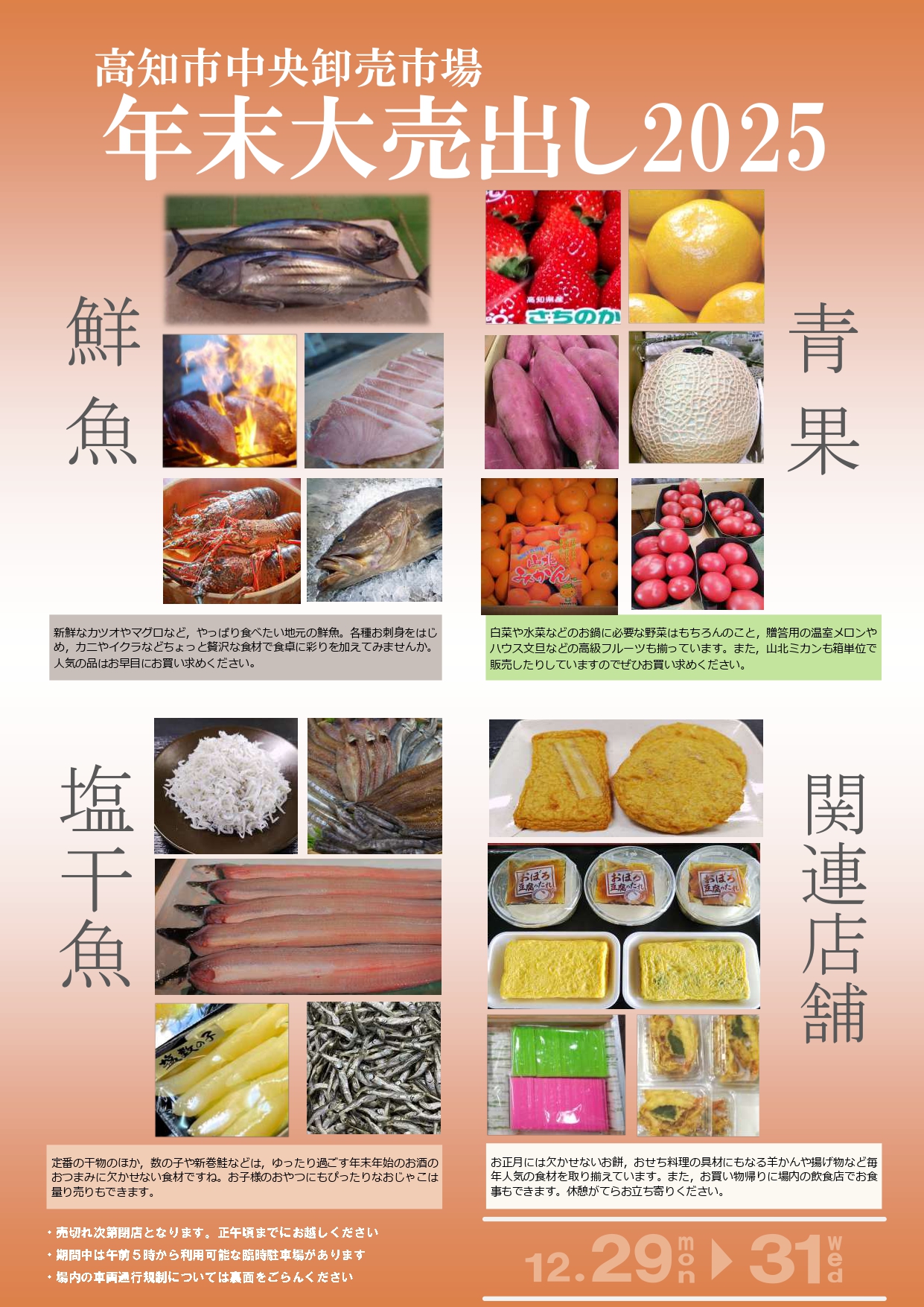 2025年12月29日~31日に「年末大売り出し」が開催される高知市卸売市場はこちら ↓↓