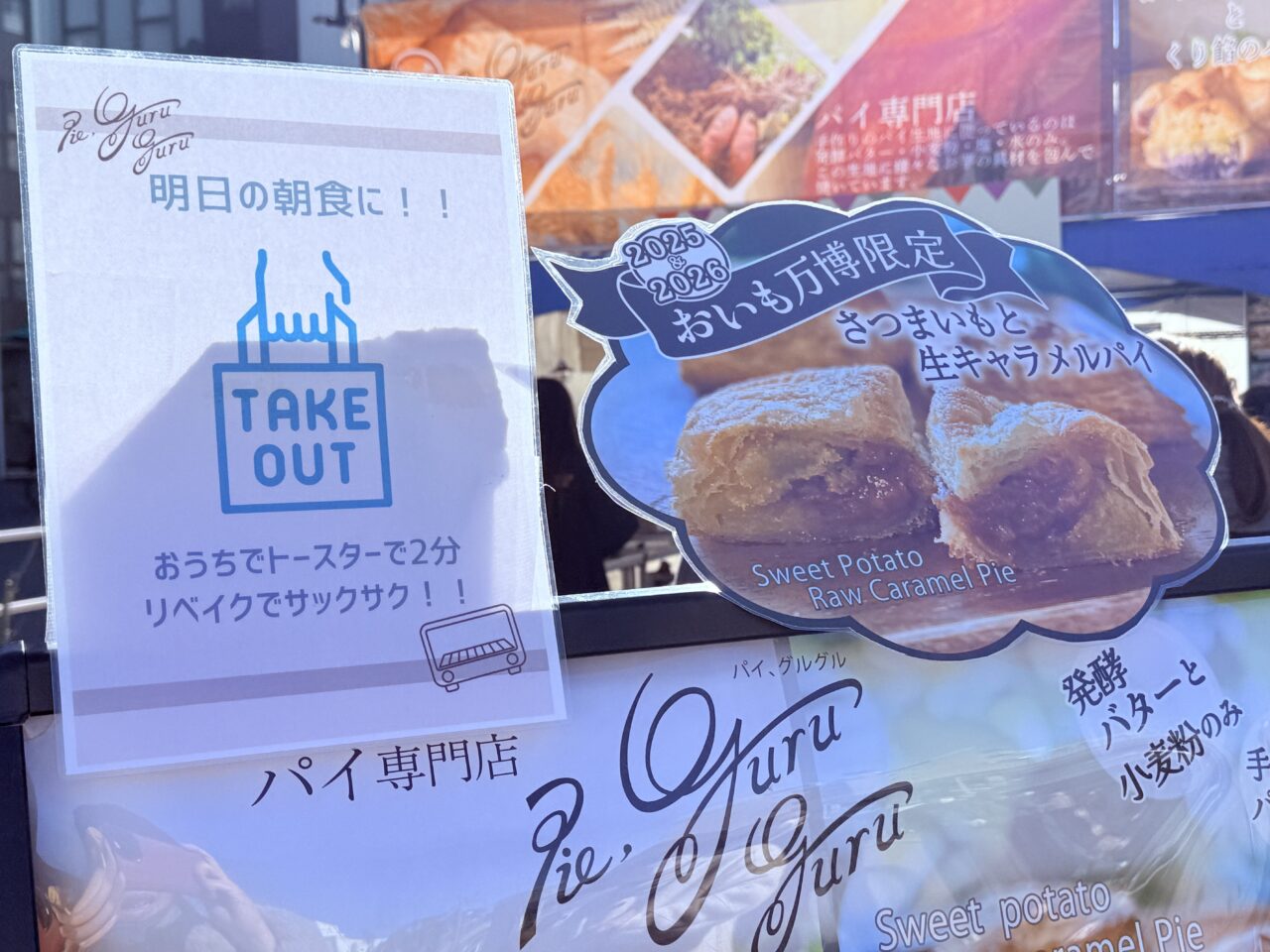 「高知おいも万博」の商品はテイクアウトできるメニューも多くありました。今回はお土産に奈良県からやってきた「パイ専門店 pie,guruguru」のパイを購入。