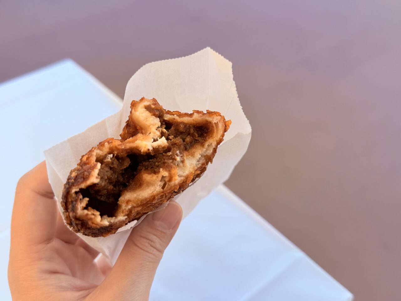 外はサクッと、中にはぎっしりカレーとチーズが入っています!寒空の下で食べる熱々のカレーパンは、身体も温まって最高でした!