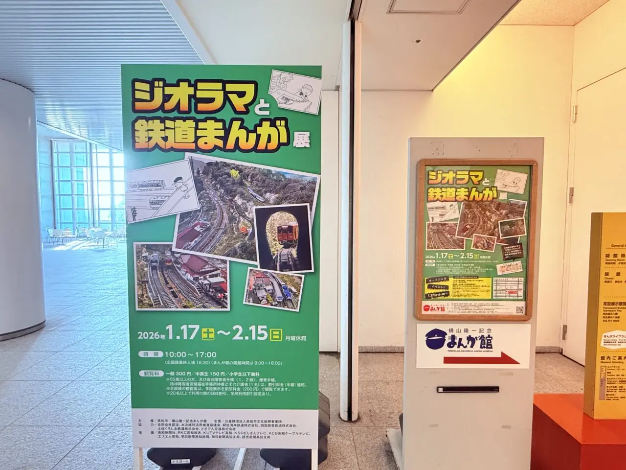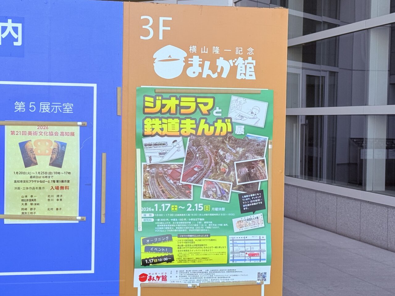 「ジオラマと鉄道まんが展」が行われているのは横山隆一記念まんが館。九反田にある文化プラザかるぽーとの3階にあります。2026年1月17日から始まり、2月15日まで行われる予定です。