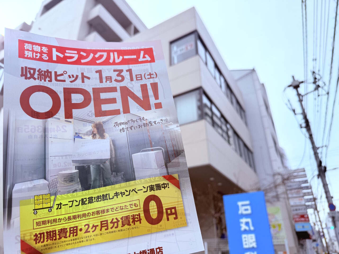 「収納ピット 高知大橋通店」がオープンしたのは2026年1月31日。それを記念して、初期費用・2ヶ月分の賃料0円のキャンペーンを実施しています(※キャンペーン内容は予告なく変更、または終了する場合があります)。