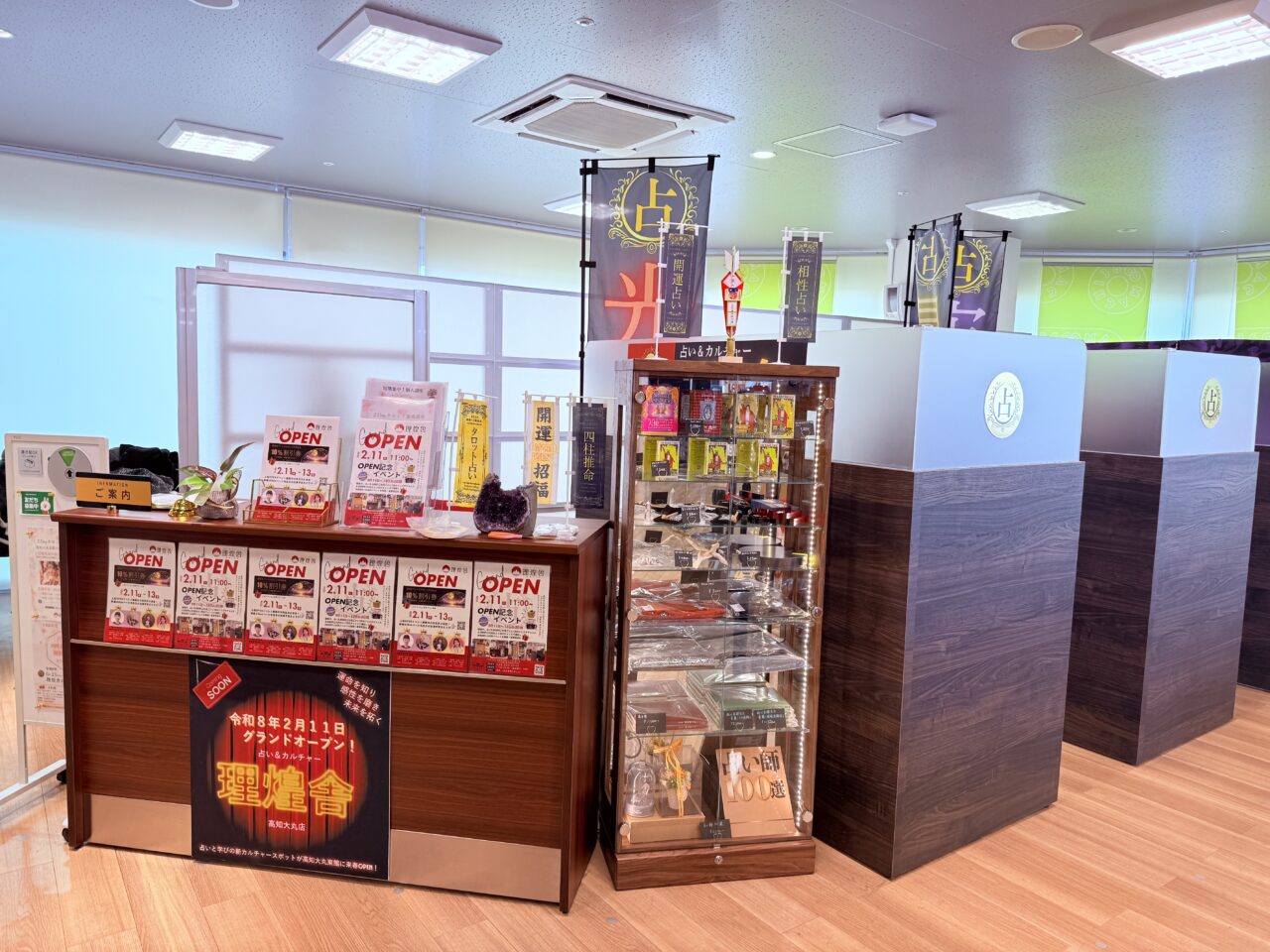 グランドオープンは2026年2月11日。オープンを記念して2月11日~13日までの3日間は、オープン記念イベントが行われます。2,000円以上の占いをされた方は空くじなしのくじ引きにチャレンジ!豪華景品が当たるチャンスです(オープンイベント期間中は県外で有名な占い師の先生もいらっしゃる予定です!)