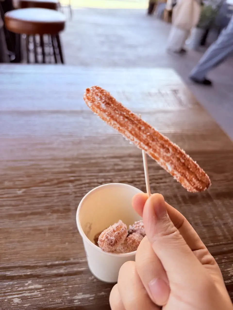 チュロスは揚げたてでシュガーたっぷり。食後のおやつにちょうどいいサイズ感で、こちらも美味しかったです。