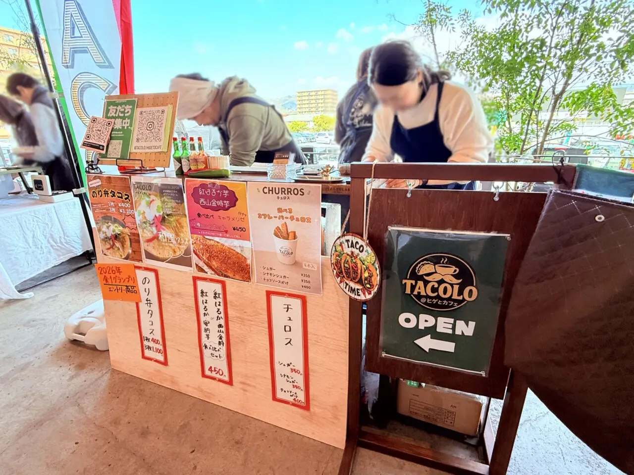 いろんなお店が並んでいる中、今回どうしても食べたかったお店「TACOLO@ヒゲとカフェ」へ。