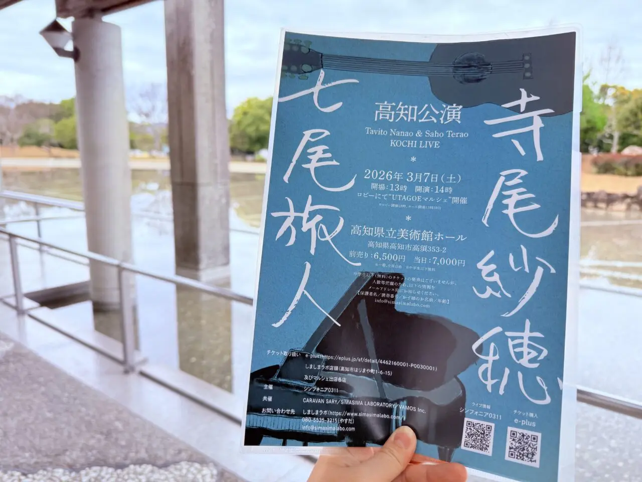 高知市高須にある高知県立美術館ホールでは、高知県出身のシンガー・ソングライターの七尾旅人さんと、高知にルーツを持つ同じくシンガー・ソングライターの寺尾紗穂さんのライブが3月7日に行われます。
