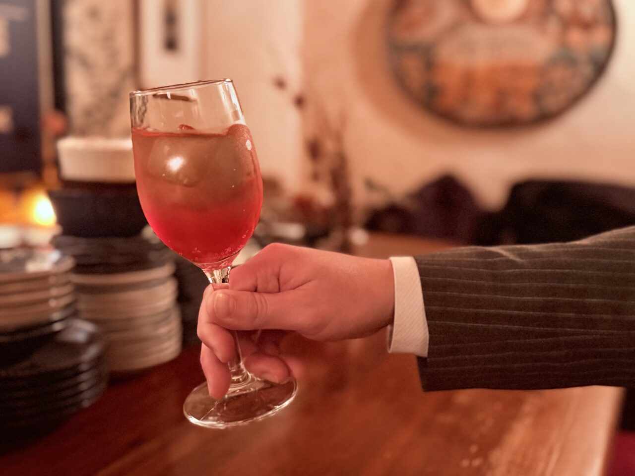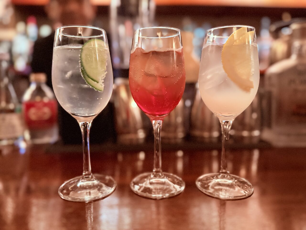 お次は、3種類の”スプリッツァー”。「香りレギュラー」を炭酸水で割り、それにプラスでしそや柚子のシロップを加えると、一気に華やかに。見た目もカラフルで、まるでワインカクテルのようです。