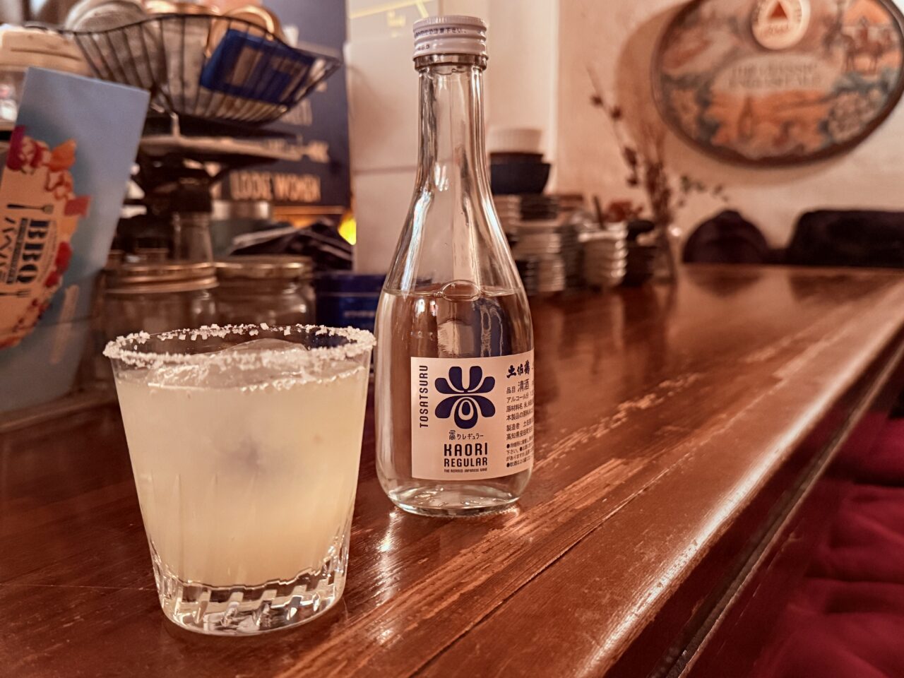 続いていただいたのは、「香りレギュラー」を使った”日本酒版ソルティドッグ”。グラスの縁には、黒潮町の天日塩があしらわれています。