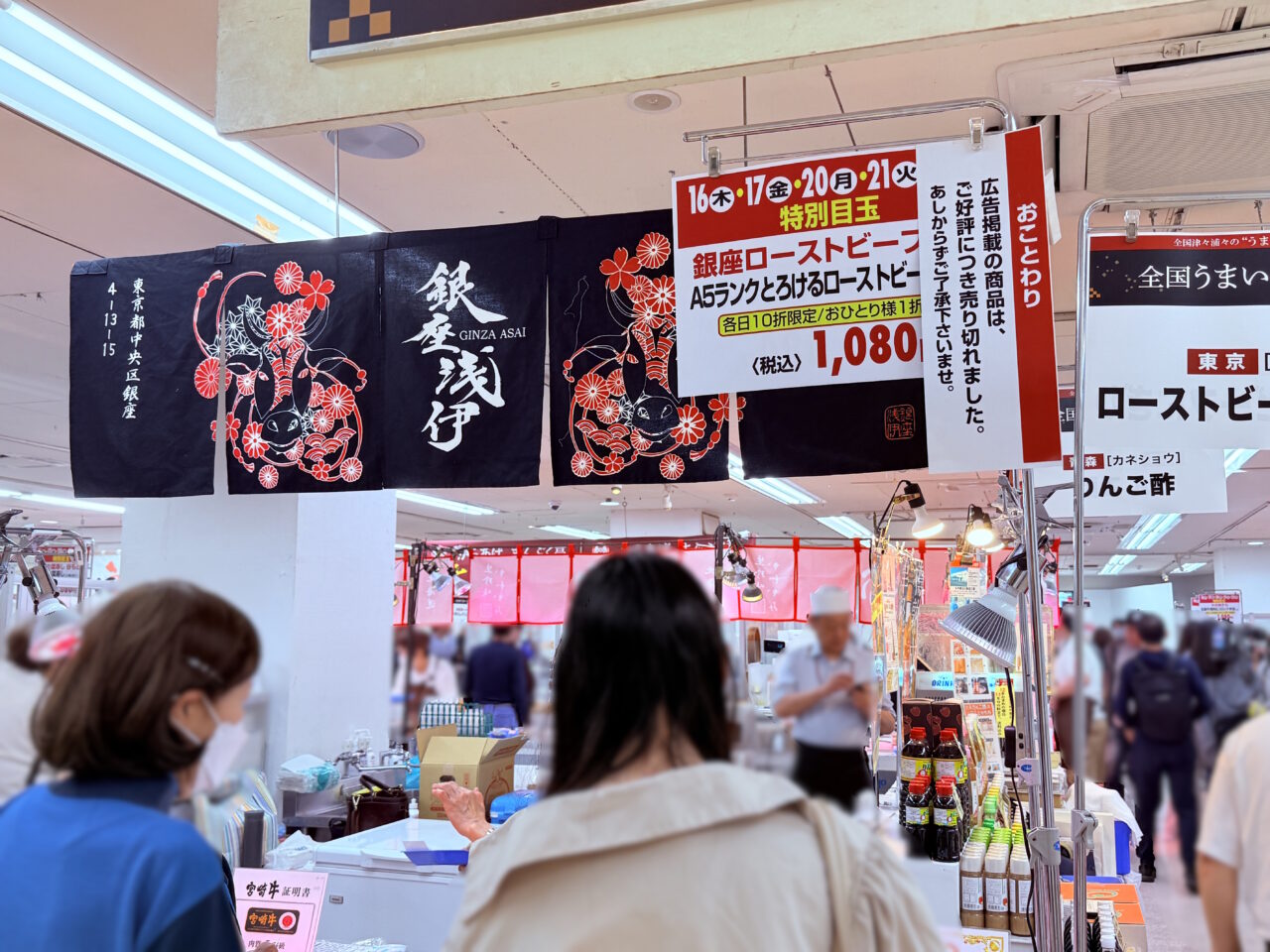オープン後、エスカレーターで5階にたどり着いたのとほぼ同時に「A5ランクとろけるローストビーフ丼」の完売を告げる声が聞こえてきました。