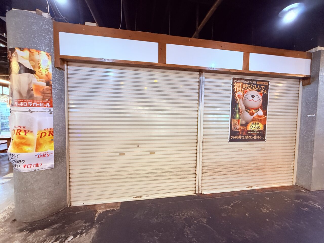 お店のシャッターが下りており、看板もすでに撤去されていました。